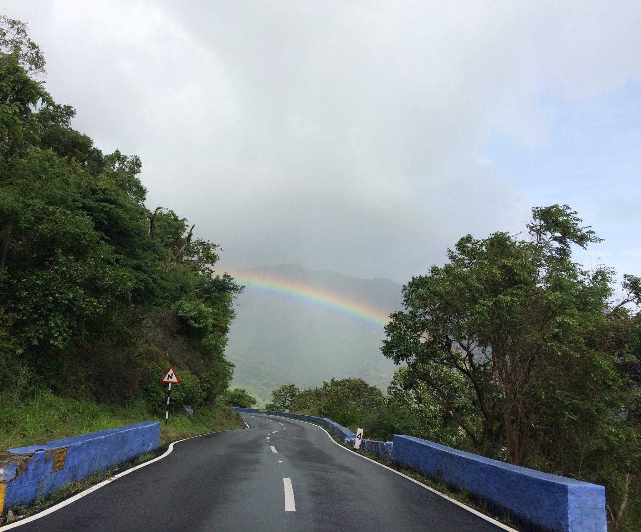 During the monsoon months, from June to August, we are treated to monsoon rains which begins in Kerala. When massive clouds roll in, lightening and thunder become a routine. Last time after a violent storm a beautiful rainbow covered the mountains! The colors and the beauty took my breath away!